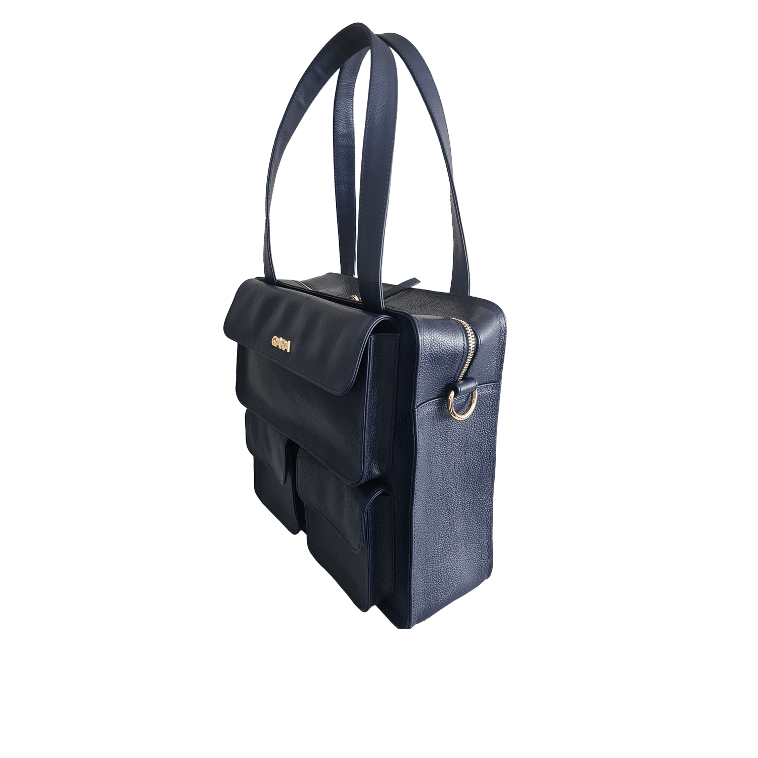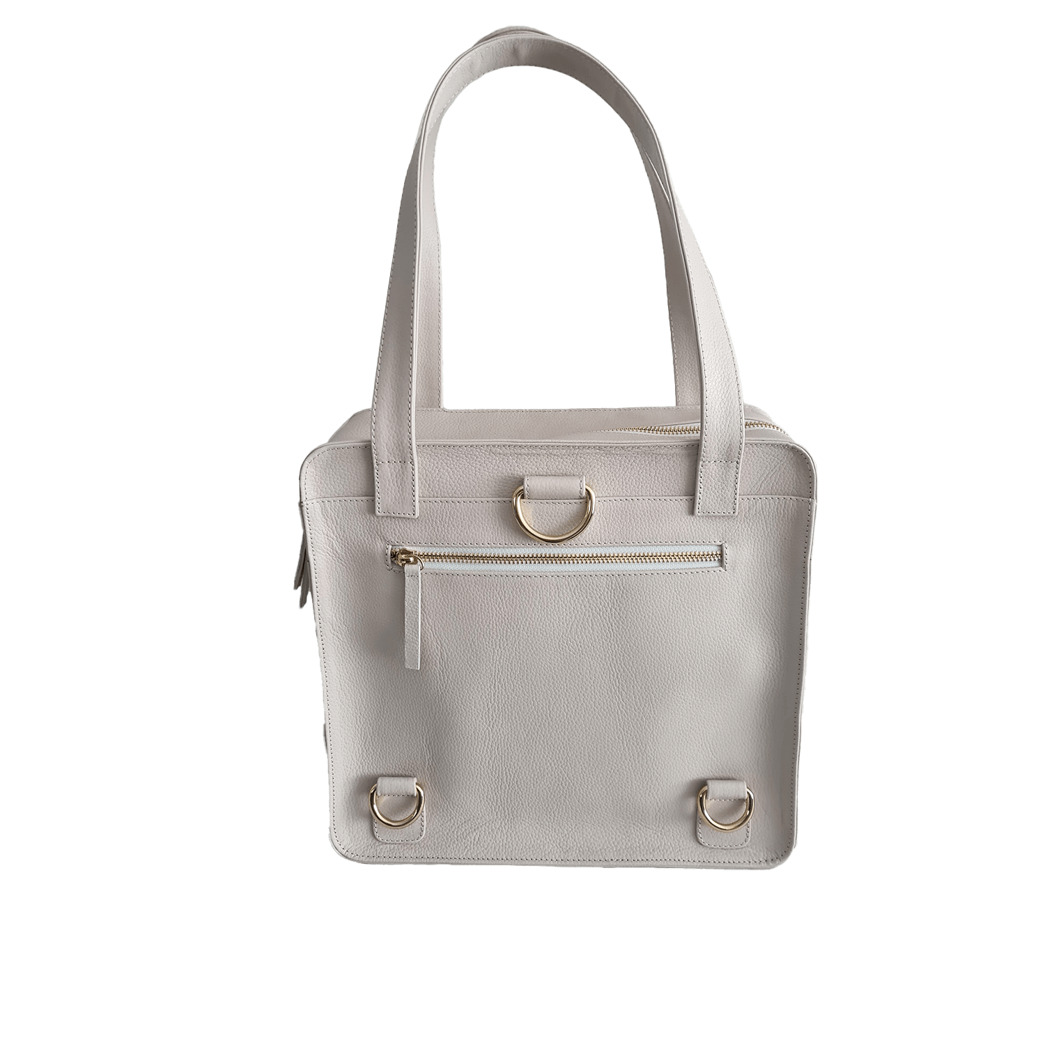 Este modelo combina elegancia y utilidad con detalles pensados para facilitar tu rutina. Tiene dos asas cómodas para el brazo y una asa larga ajustable que te permite llevarla como morral o convertirla en mochila, pasándola por tres discretos ojalillos en la parte posterior.