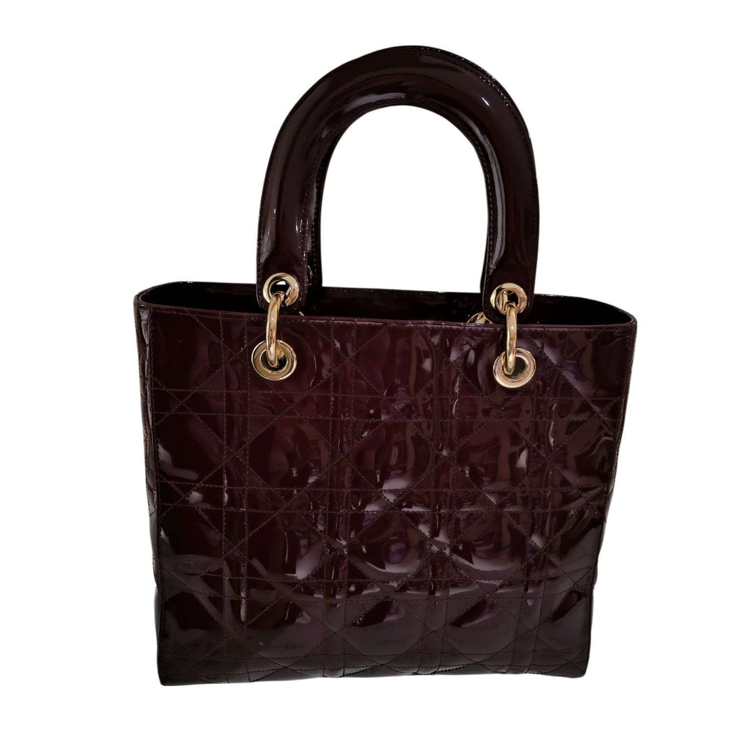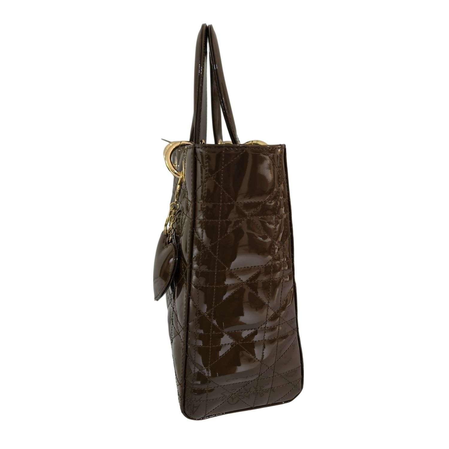 Tote en cuero charol marrón 🤎 con brillo elegante y acabado sofisticado. Incluye herrajes bañados en oro, asa de mano y asa larga ajustable (removible). Cierre metálico seguro, bolsillo interno con cierre y base con patitas protectoras para mayor durabilidad.