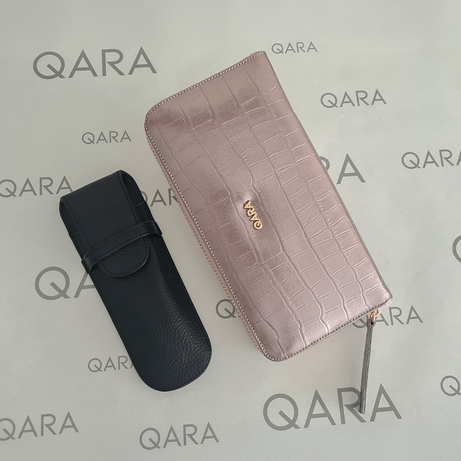 Complementa el set un porta lápiz en cuero a juego, perfecto para llevar lapiceros o pequeños esenciales sin desordenar tu cartera.