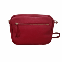 Exterior: cierre de metal y bolsillo externo también con cierre de metal y asa larga al hombro.