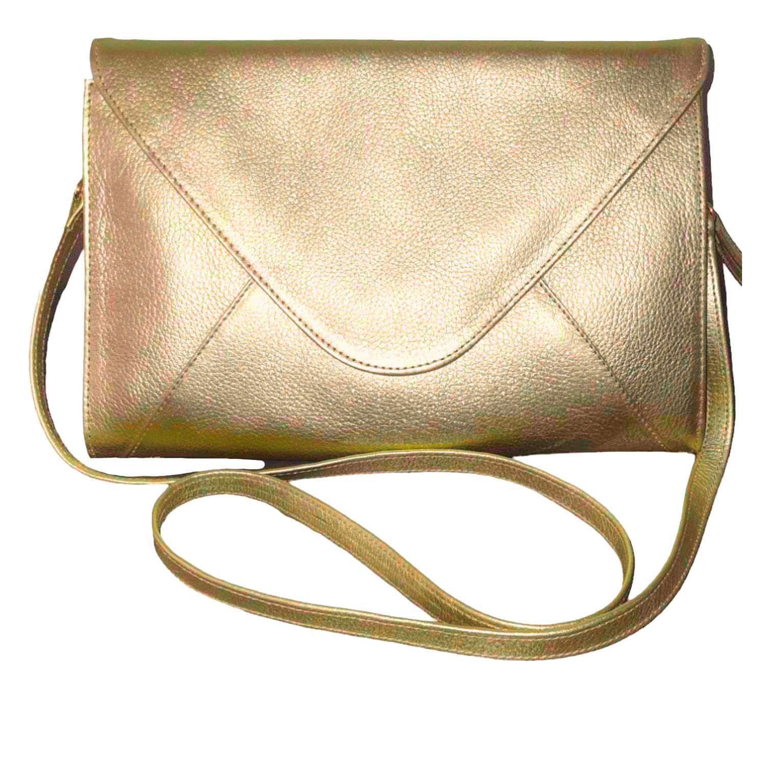 Los accesorios bañados en oro añaden un toque de lujo y distinción a esta elegante Clutch Socorro.