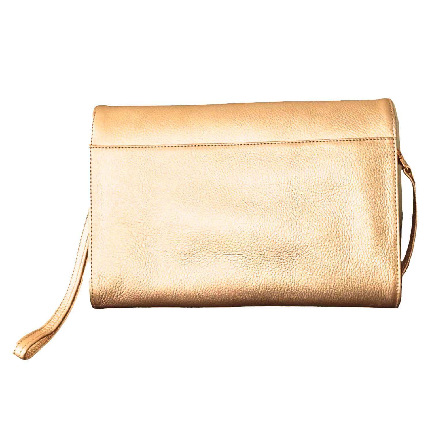 Fabricada en cuero floter genuino de color dorado light, esta cartera de mano tipo sobre es el accesorio perfecto para cualquier ocasión. Con su diseño sofisticado y funcional, seguro que destacarás en cualquier evento.