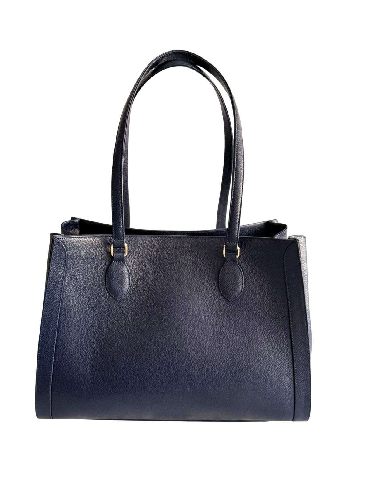 Con medidas de 39.5 cm de largo, 28 cm de alto, 17 cm de ancho y asas de 30.5 cm, esta tote combina diseño atemporal con practicidad.